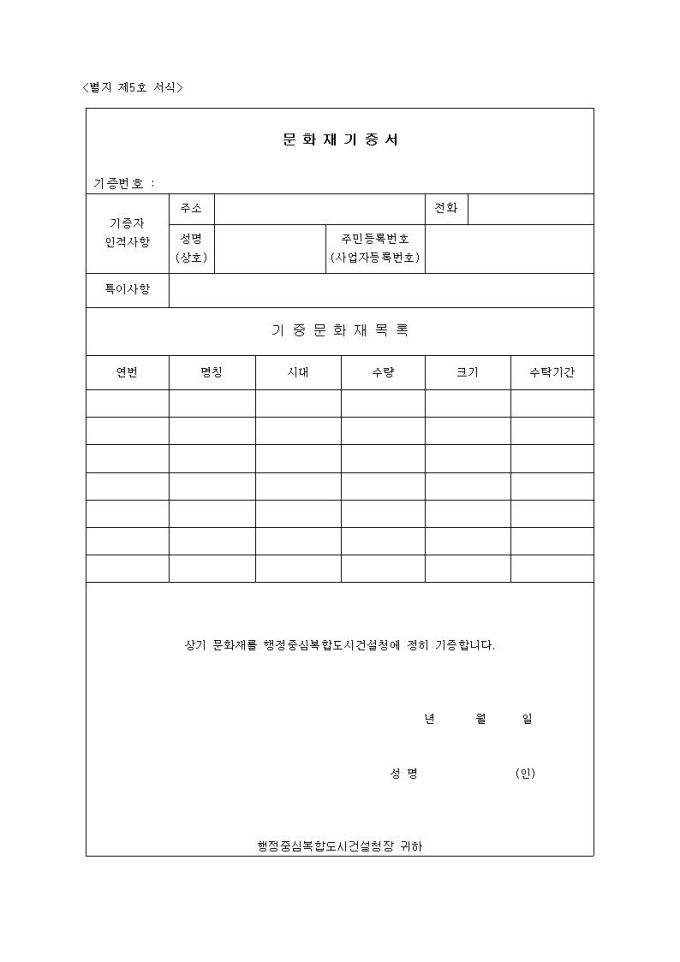 문화재 기증서