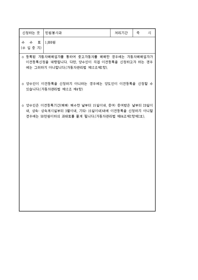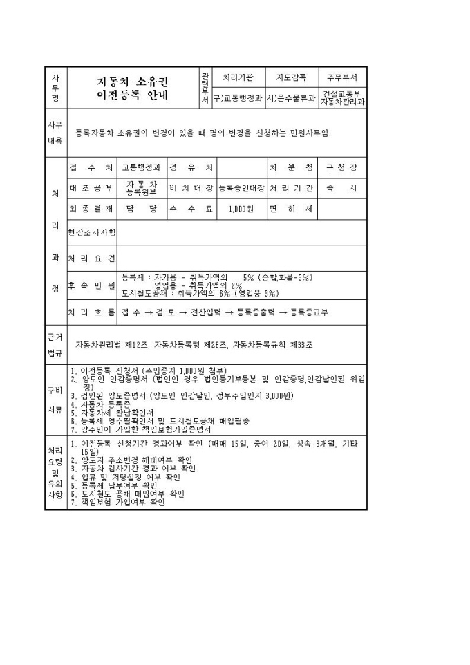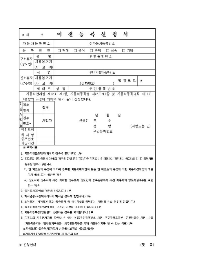 자동차 이전등록신청서