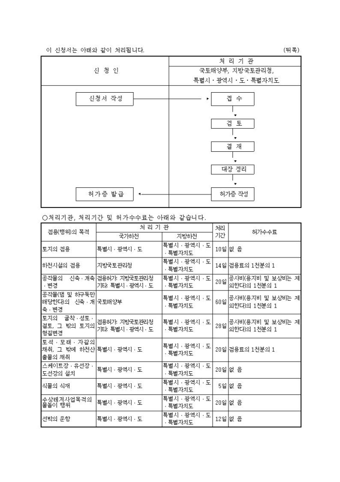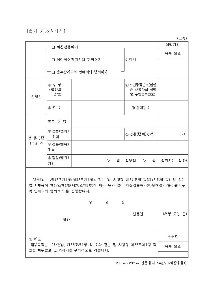 하천수 사용허가 신청서 1부