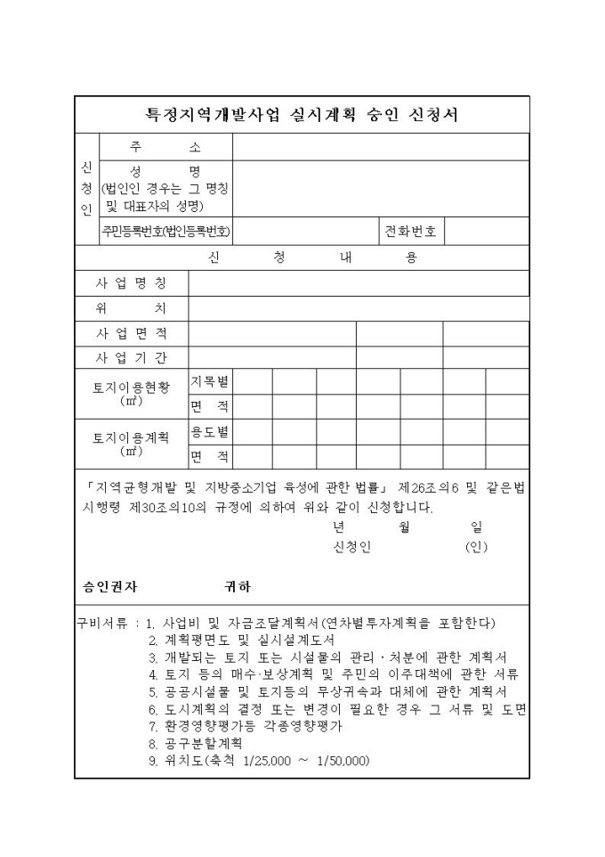 특정지역개발사업 실시계획 승인신청서