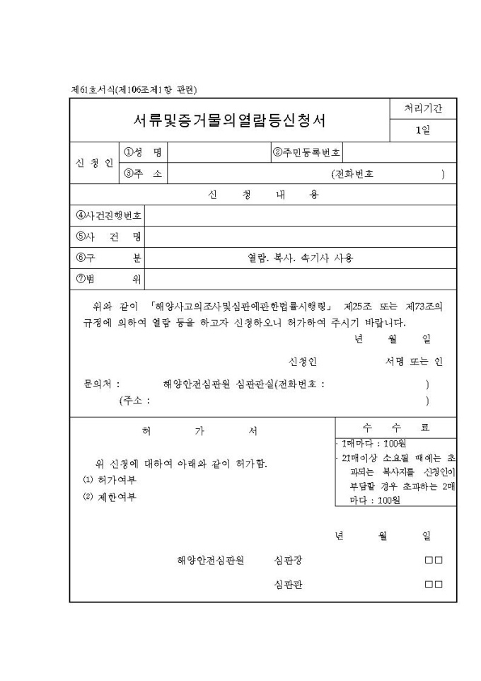 서류및증거물의열람등신청서