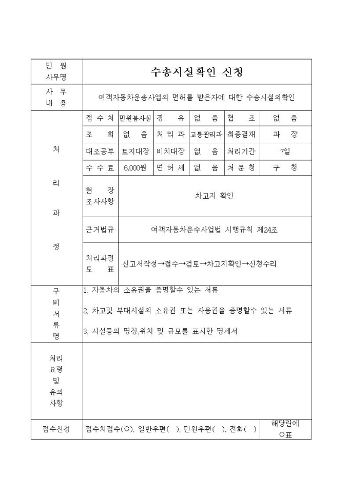 수송시설확인신청서