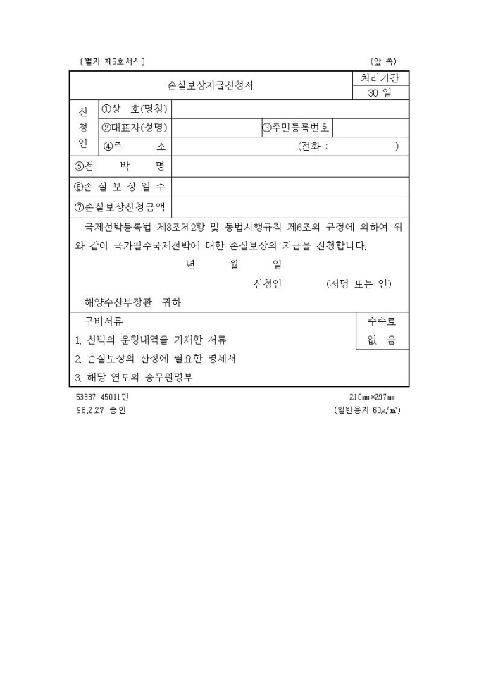손실보상지급신청서