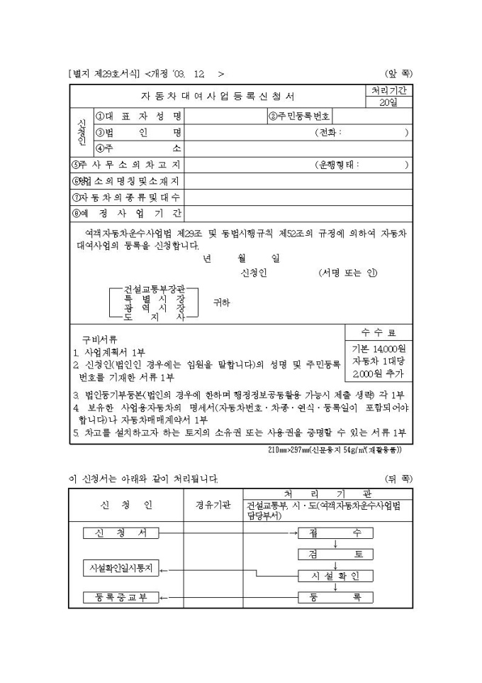 자동차대여사업등록신청서