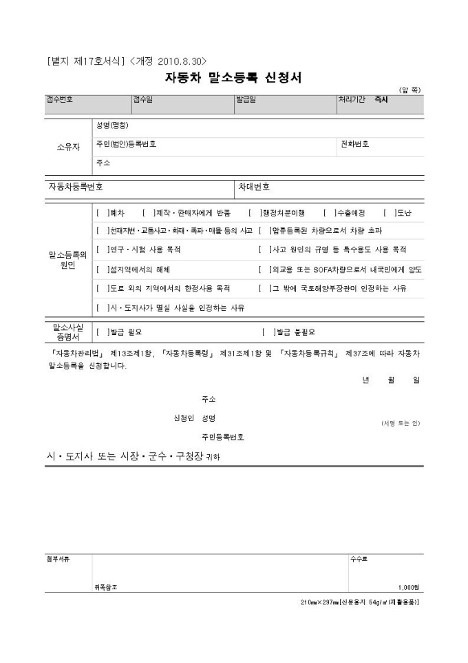 [서식 17] 자동차 말소등록 신청서