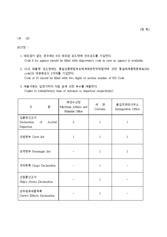 외항선 입항, 출항 신고서(Declaration of Arrival or Departure)