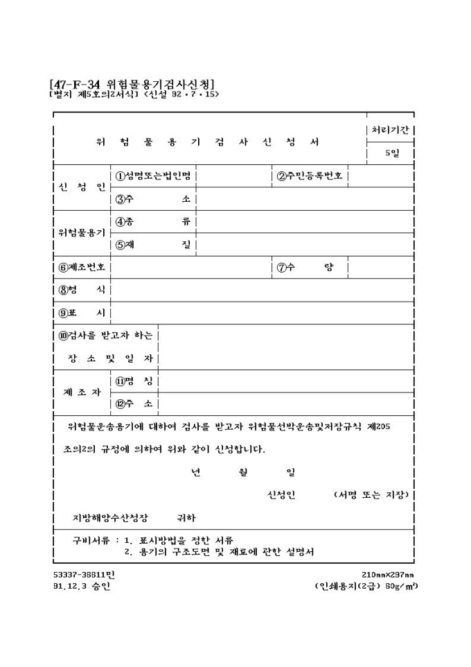 위험물용기검사신청서