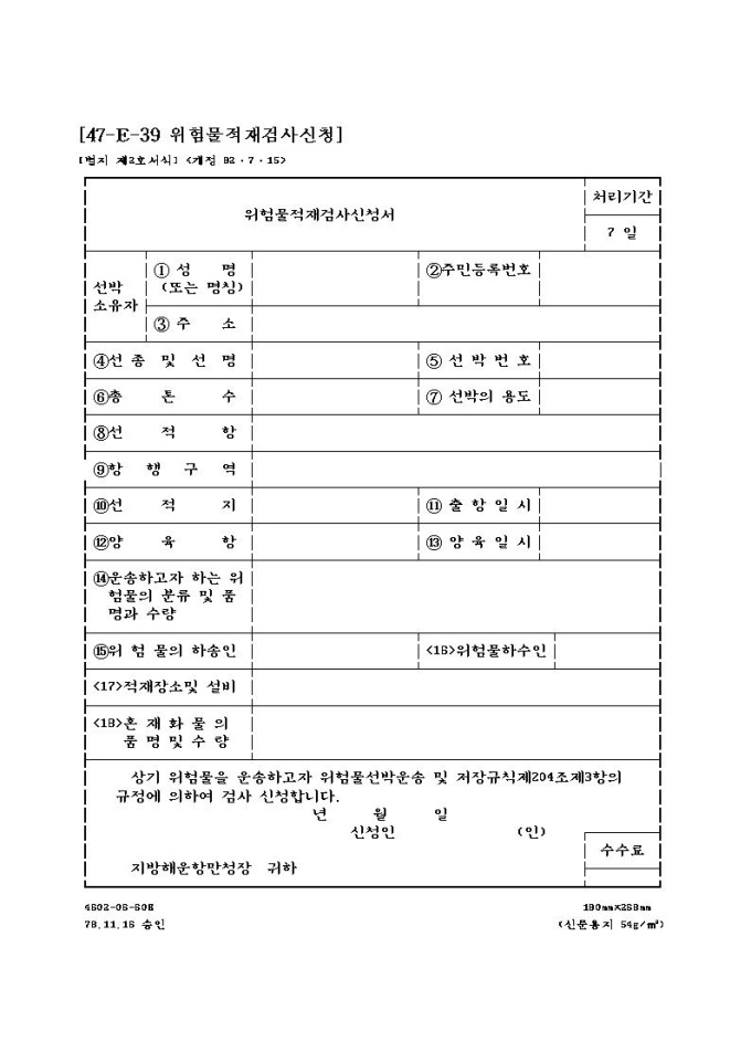 위험물적재검사신청서