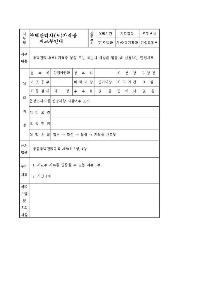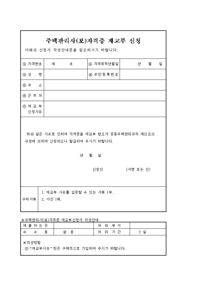 주택관리사등 자격증 재교부 신청서