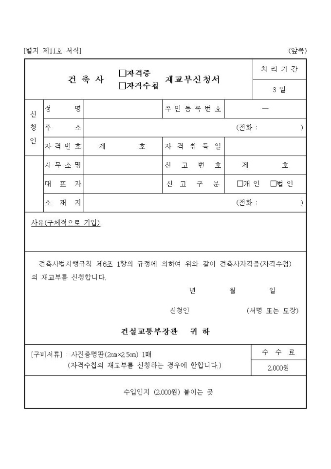 건축사자격증.자격수첩재교부신청서