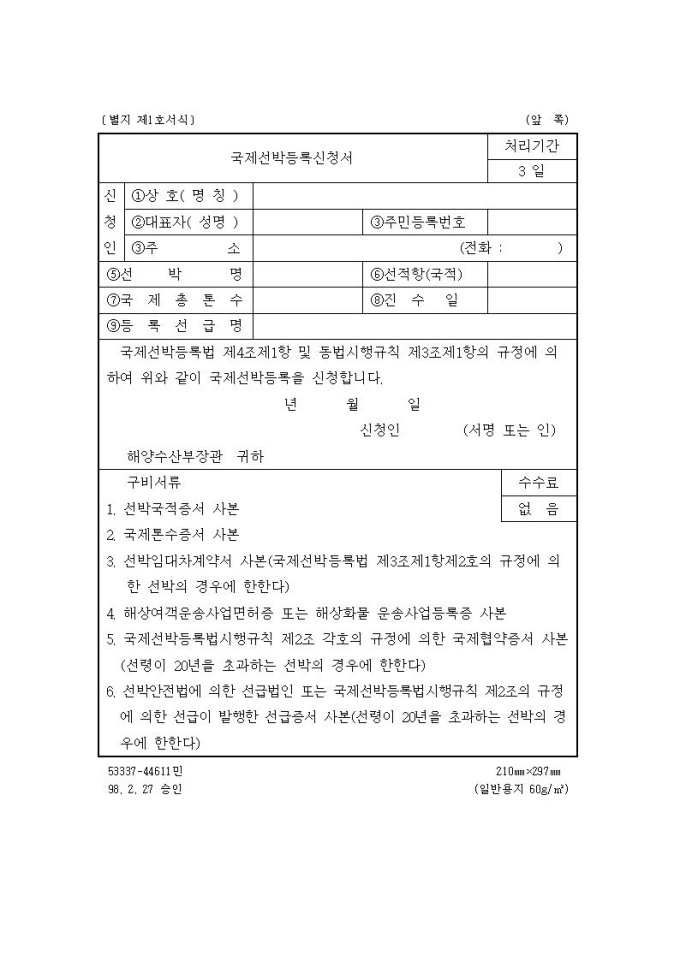 국제선박등록신청서
