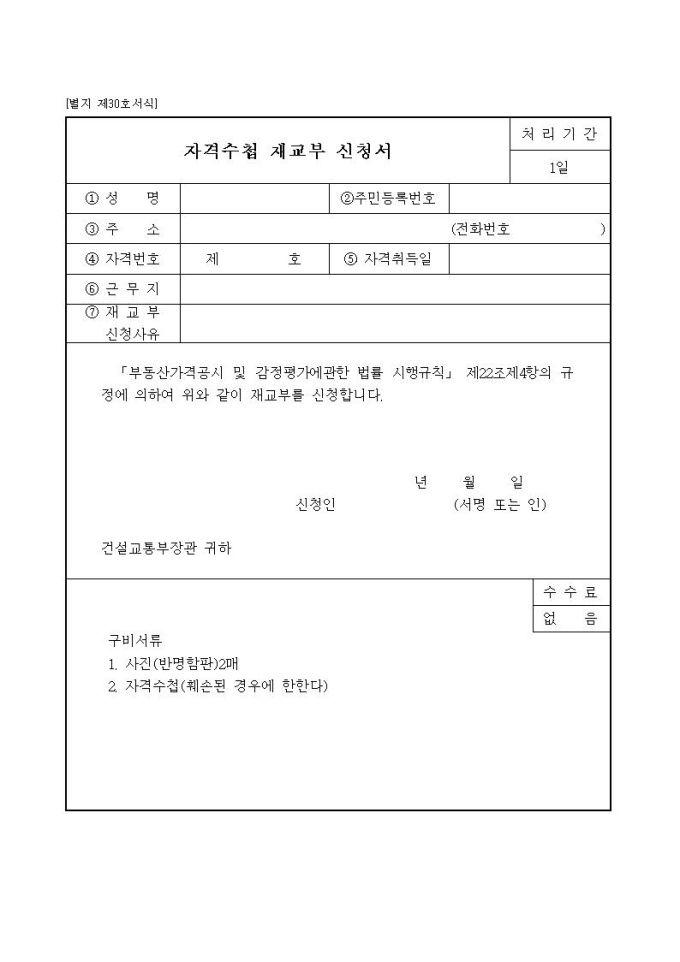 자격수첩재교부신청서