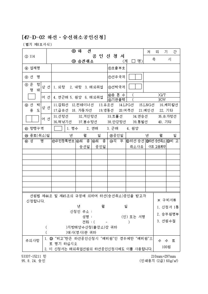 (하선,승선취소)공인신청서
