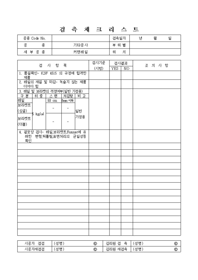 3. 레일 및 브라켓의 적정여부(일반 가정용)