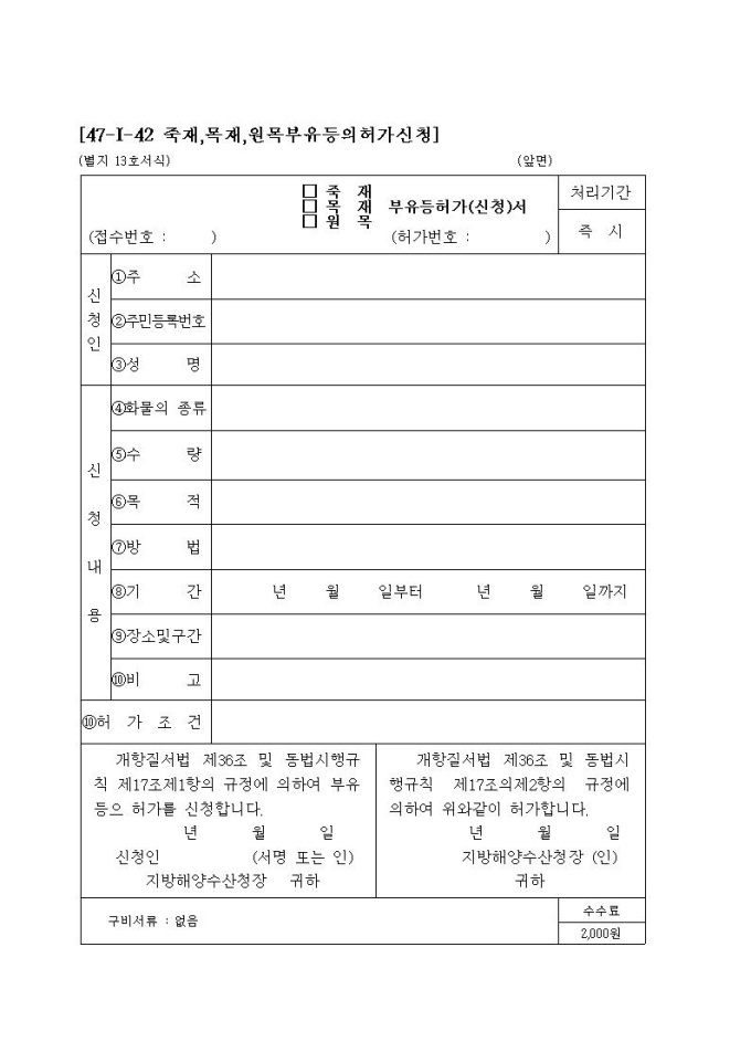 (죽재, 목재, 원목)부유등허가(신청)서