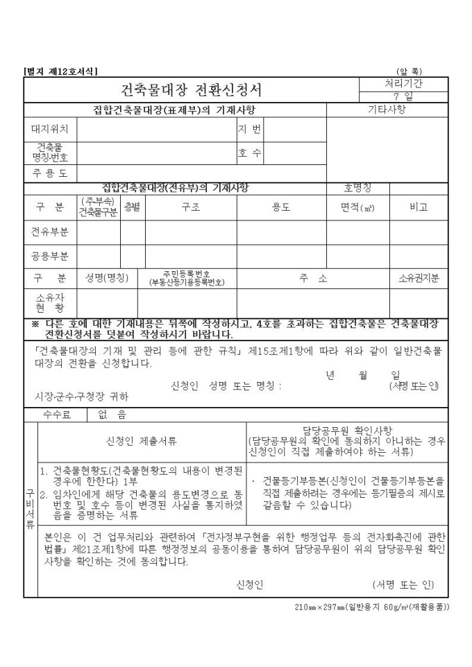 건축물대장전환신청서