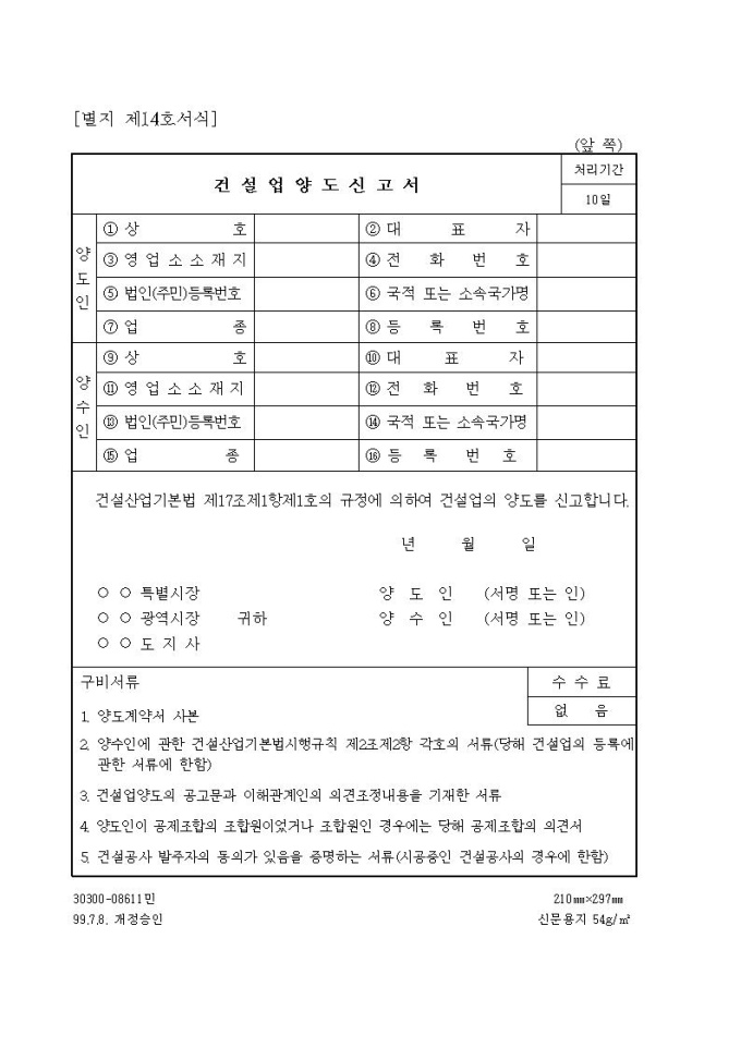 건설업양도신고서