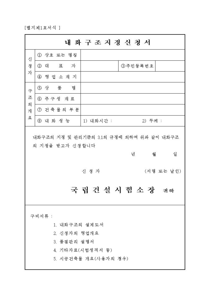 내화구조지정신청서