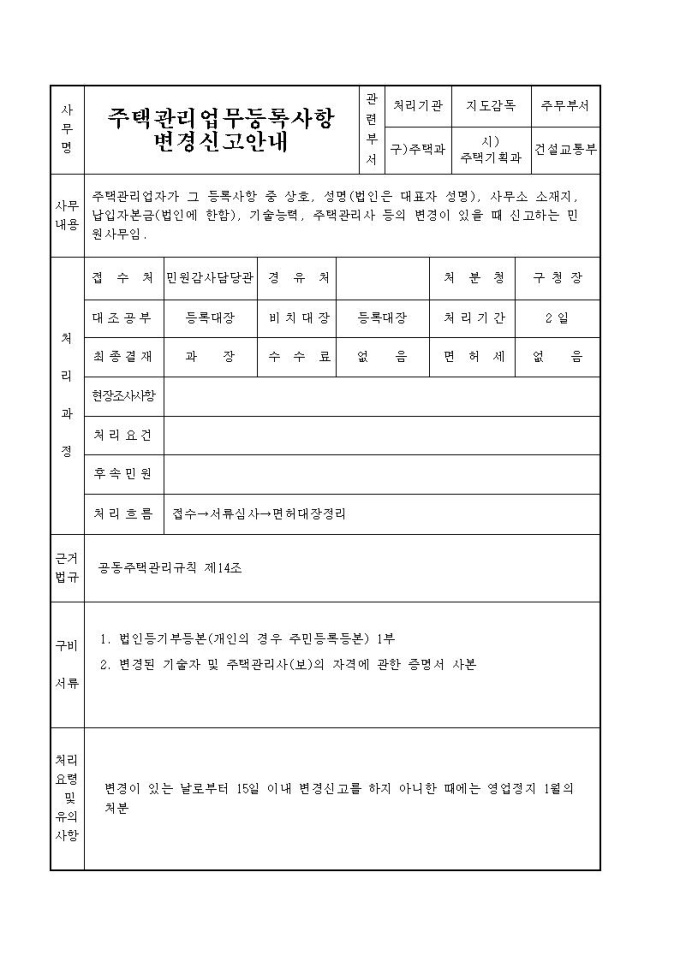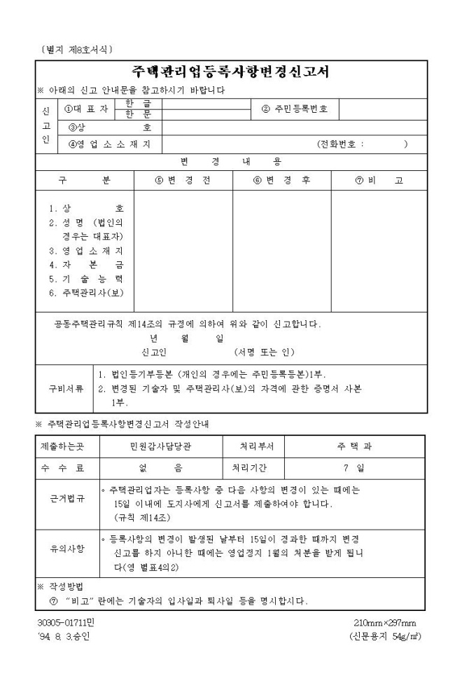 주택관리업등록사항변경신고서