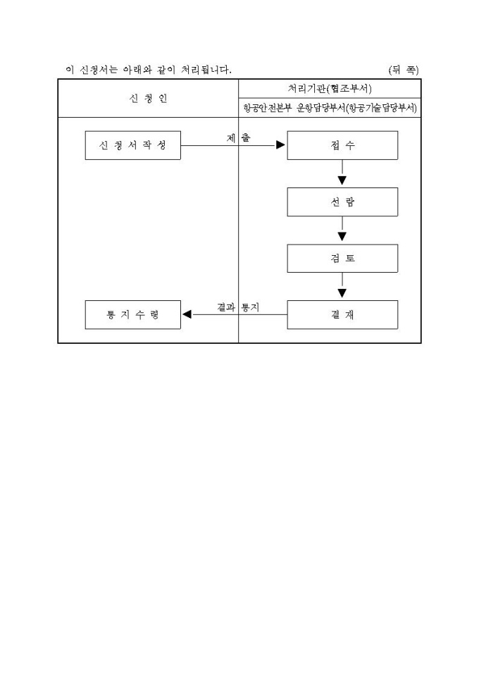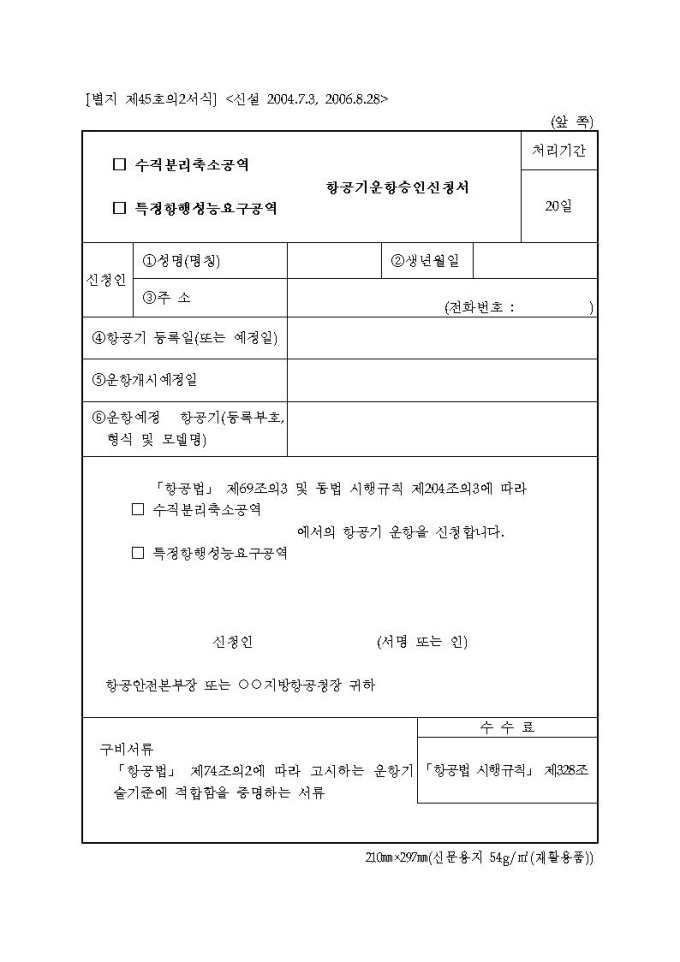 수직분리축소공역 항공기 등에서의 운항승인 신청서