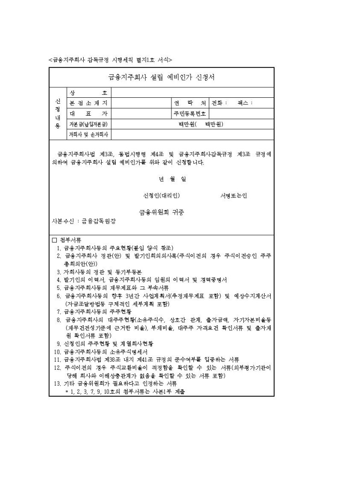 금융지주회사 설립 예비인가