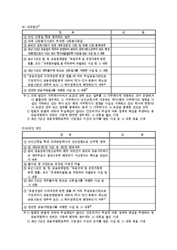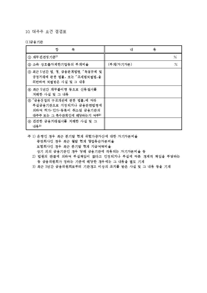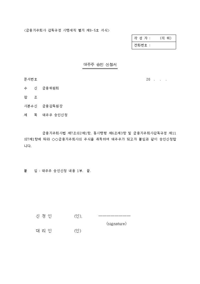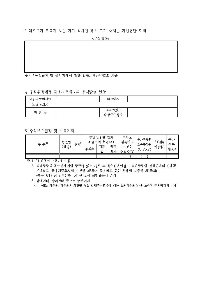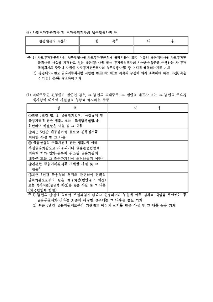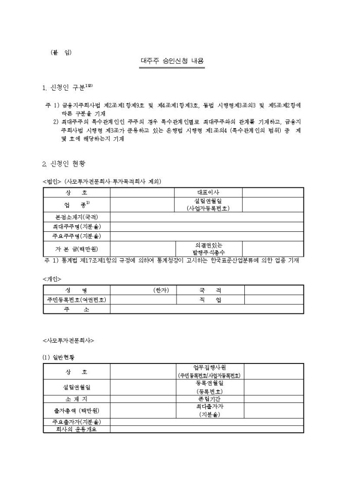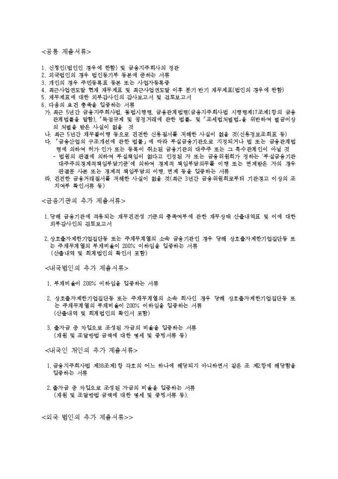 금융지주회사(은행지주회사 제외) 대주주 변경 승인