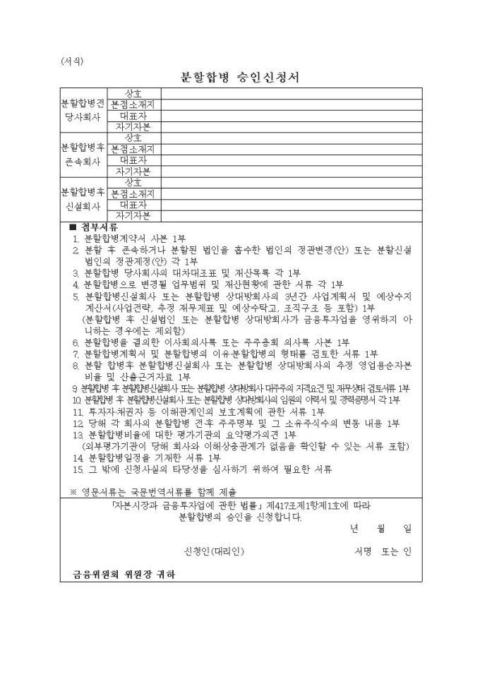 금융투자업자 분할합병 승인