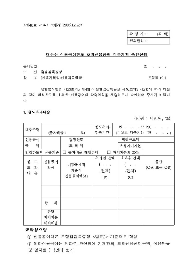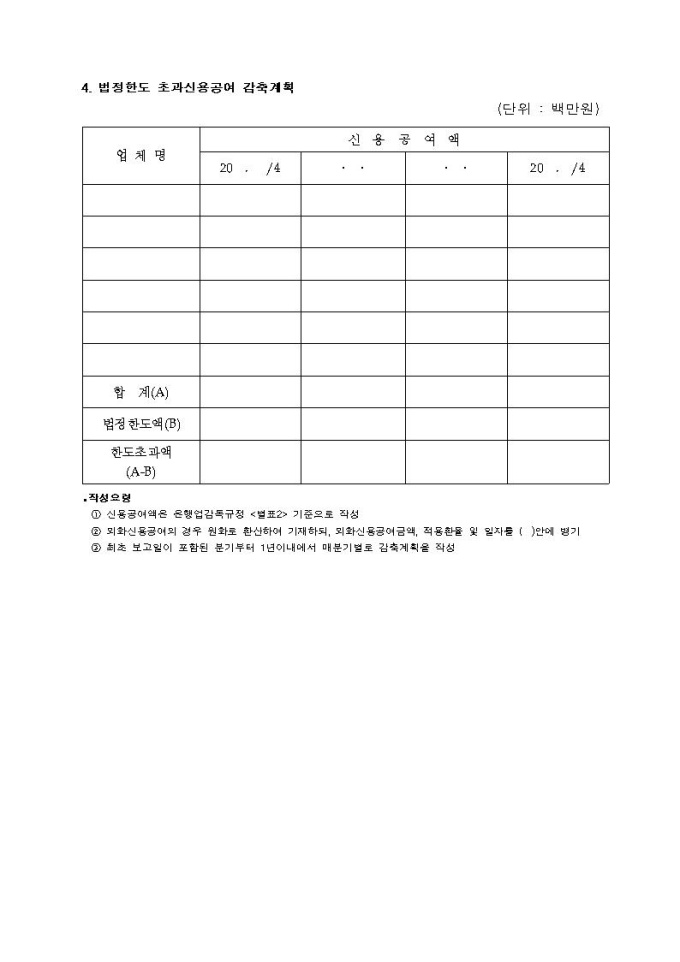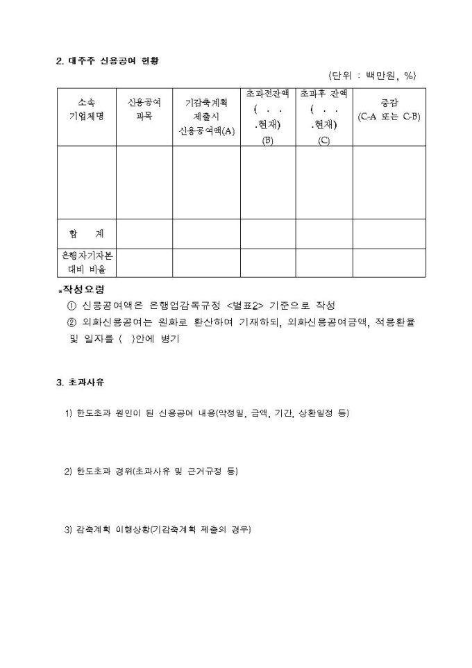 대주주에 대한 초과신용공여한도 해소계획 승인