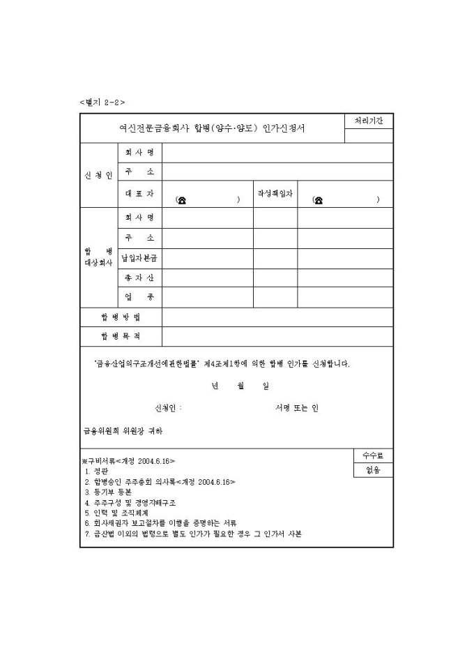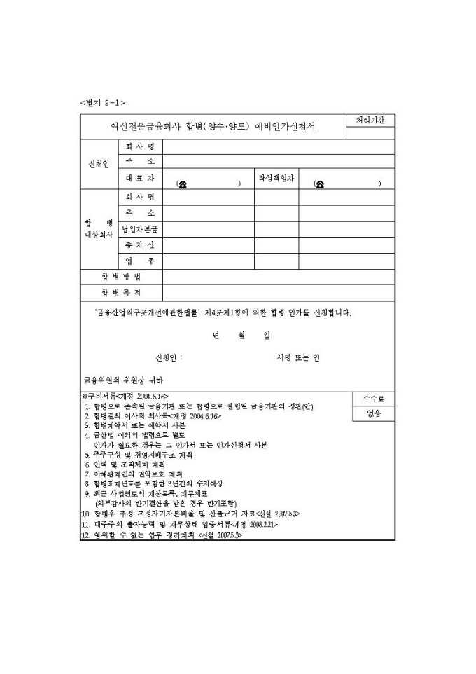 여신전문금융회사 영업양수도 예비인가, 인가신청서