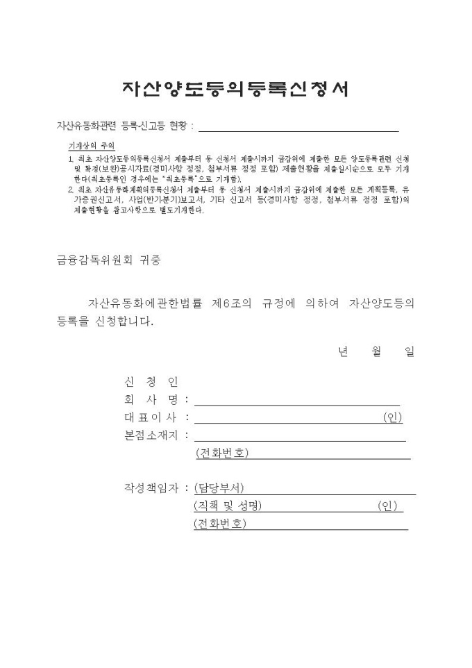 자산양도등록신청서(1부)