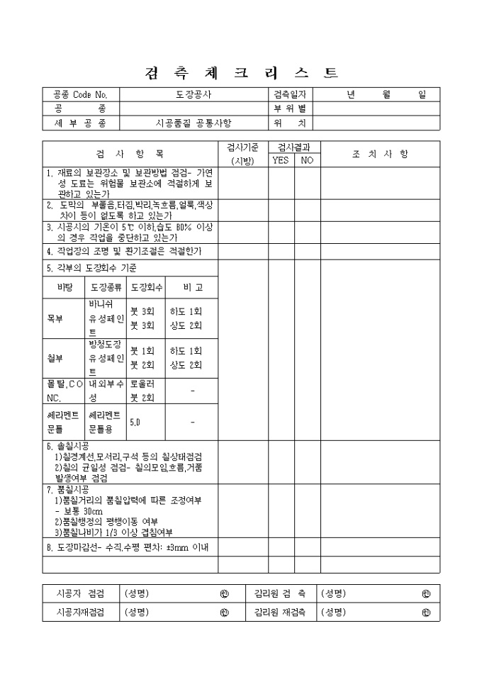 도장공사,시공품질공통사항 체크리스트 입니다.