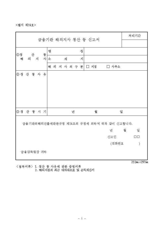 금융기관해외지사청산등신고서