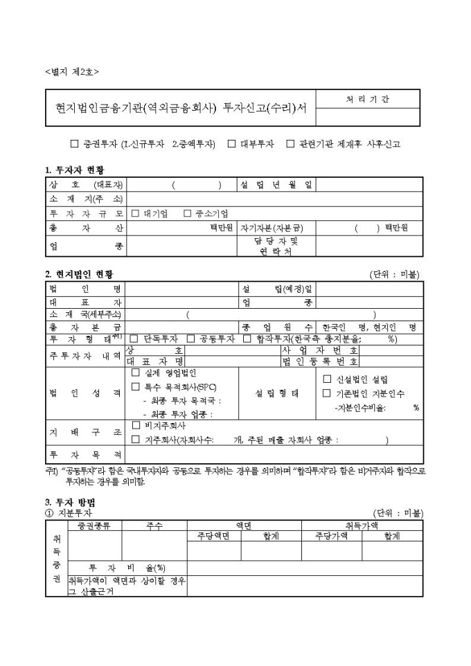 현지법인금융기관(역외금융회사)투자신고(수리)서