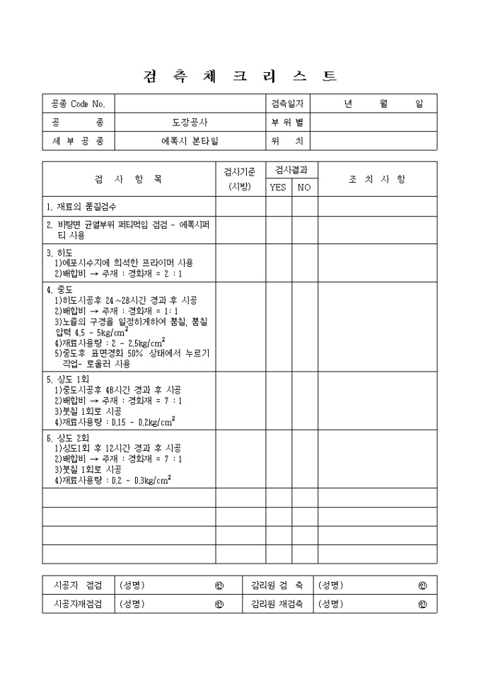 도장공사,에폭시본타일 체크리스트 입니다.