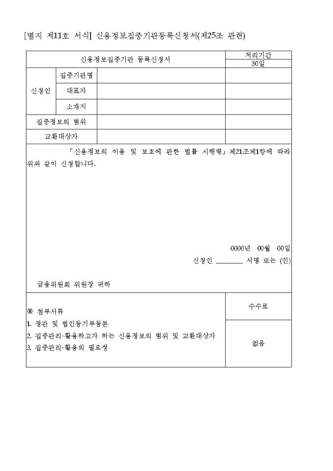 신용정보집중기관 등록신청서