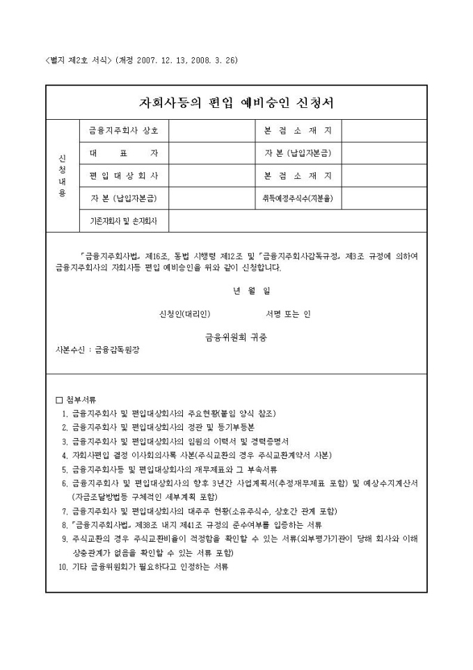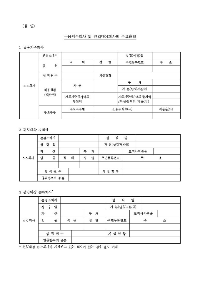 자회사등의 편입 예비승인, 승인신청서