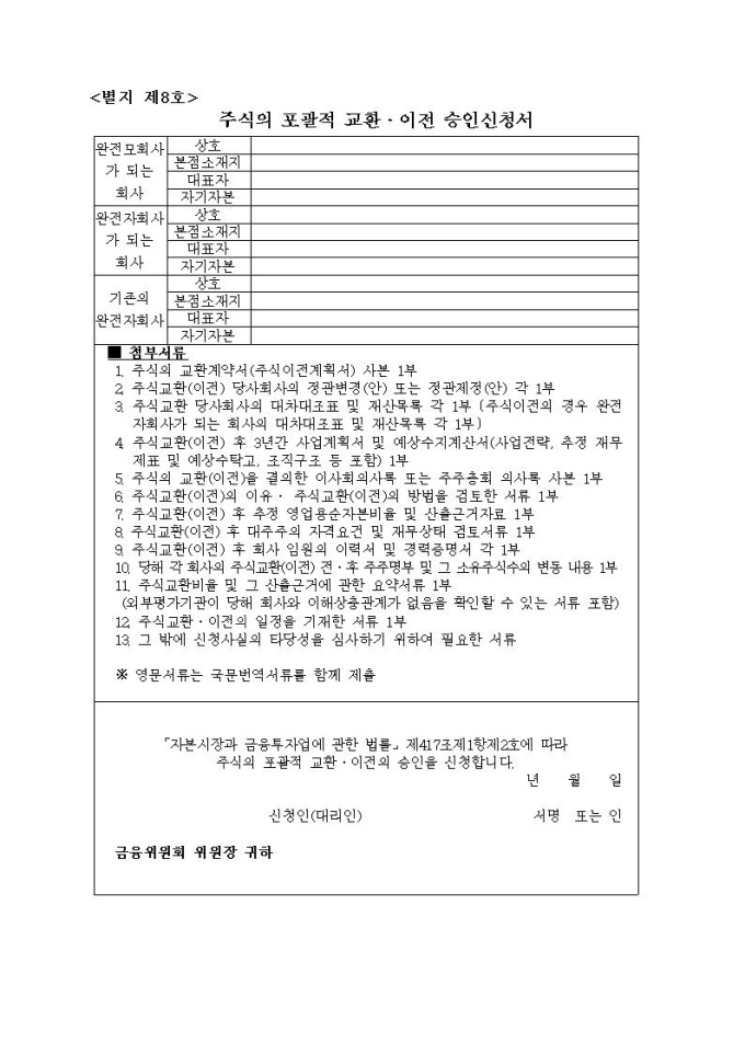 주식의 포괄적 교환·이전 승인신청서