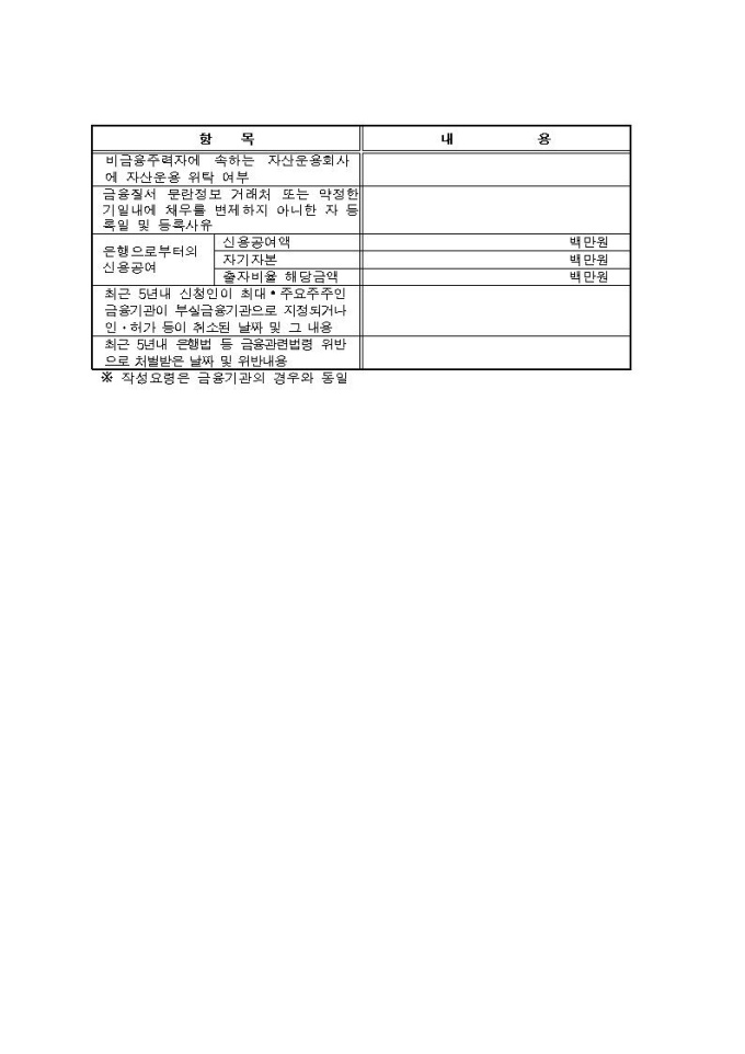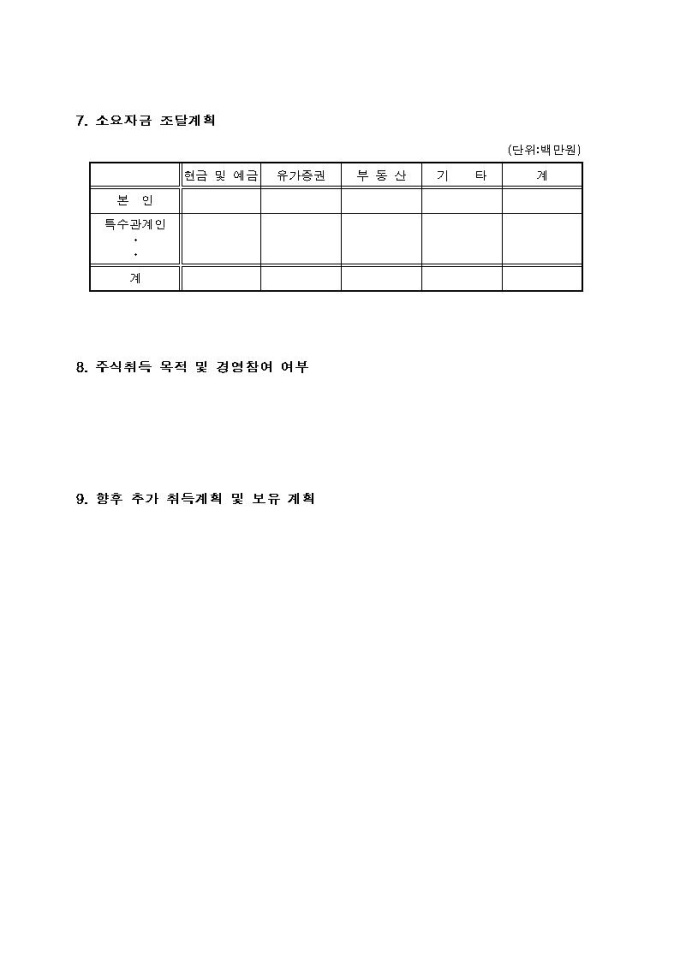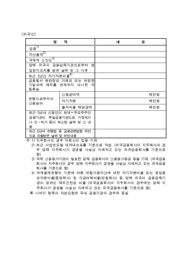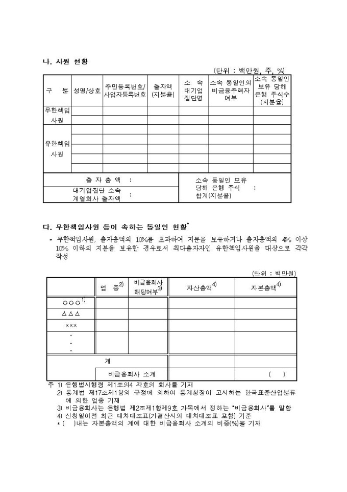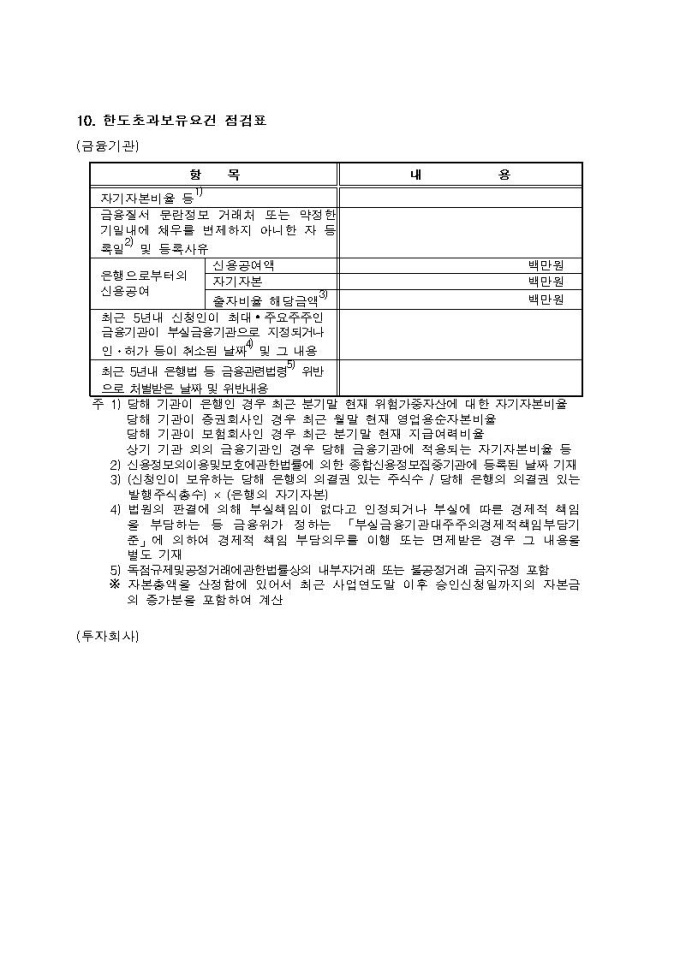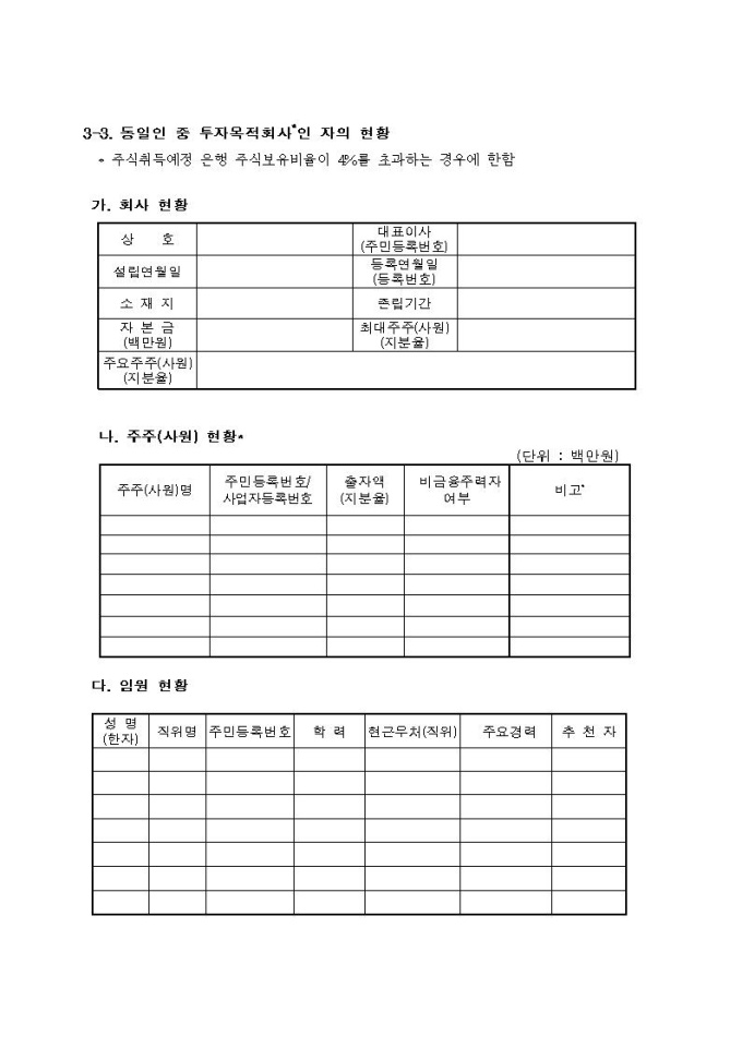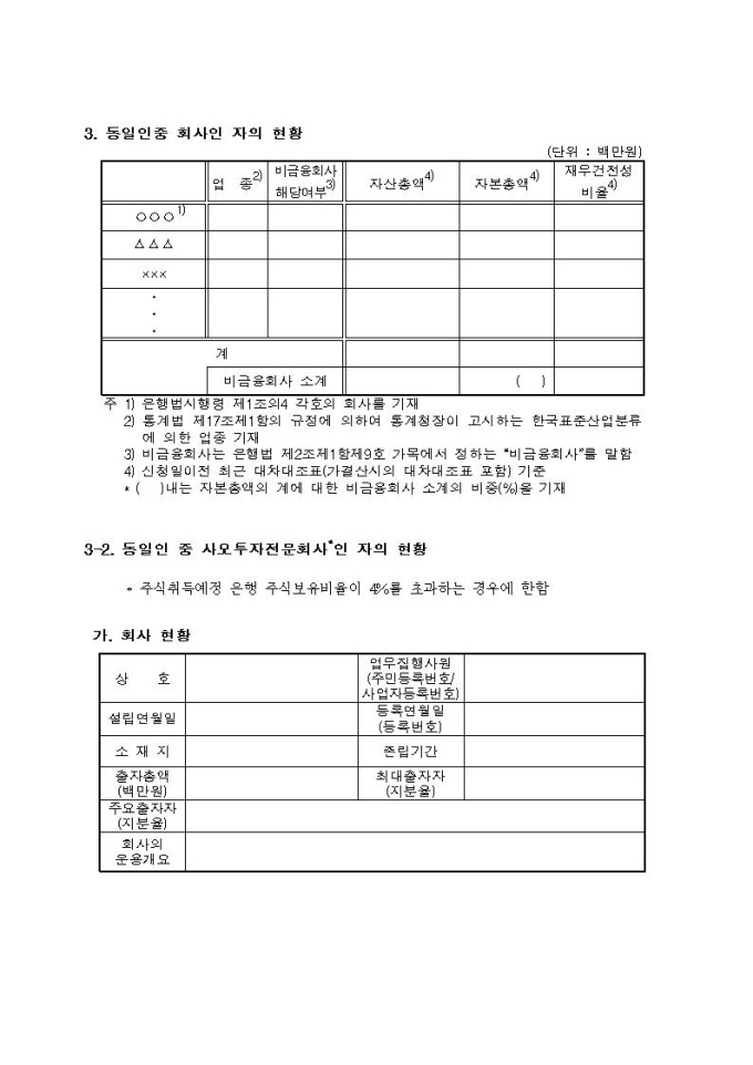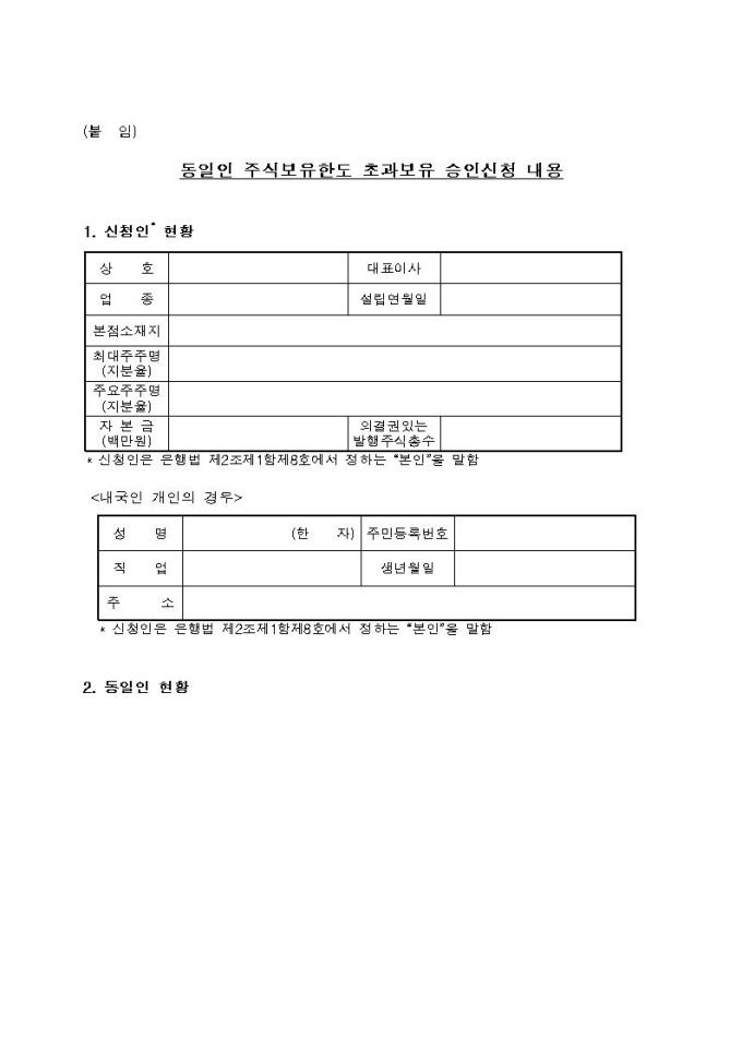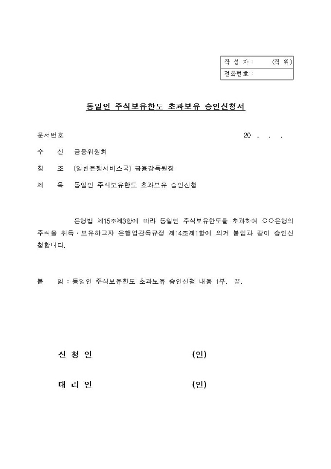 동일인 주식보유한도 초과보유 승인신청서