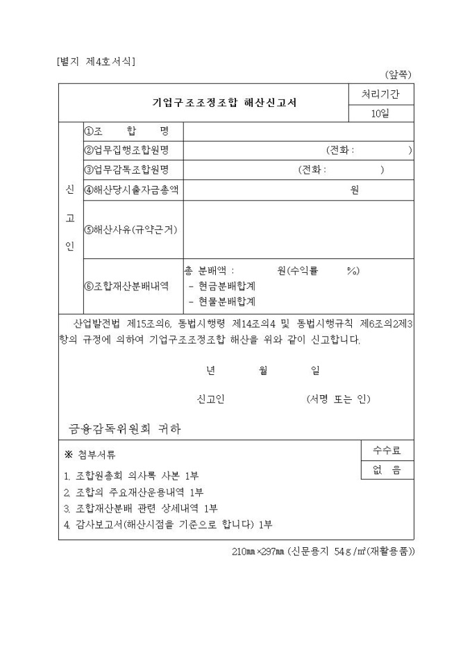 기업구조조정조합해산신고서