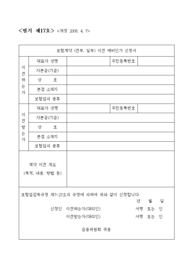 보험회사 보험계약(전부·일부) 이전 예비인가