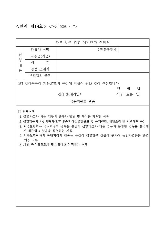 보험회사 타사업 겸영 예비인가