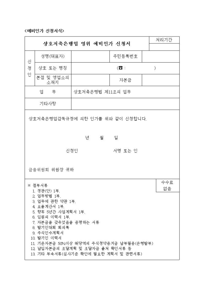 상호저축은행 설립 예비인가