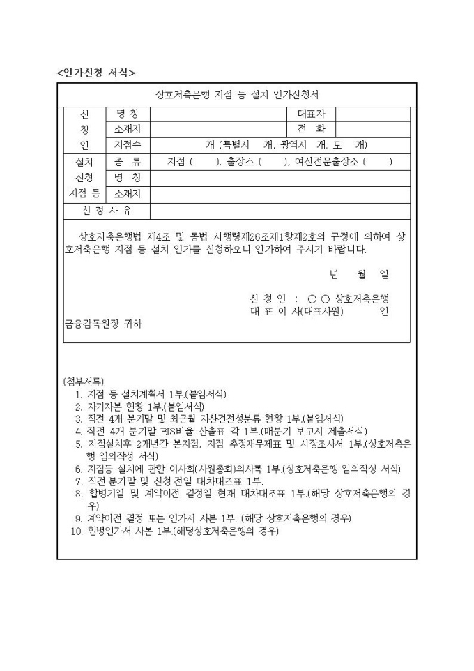 상호저축은행 지점등 설치 인가