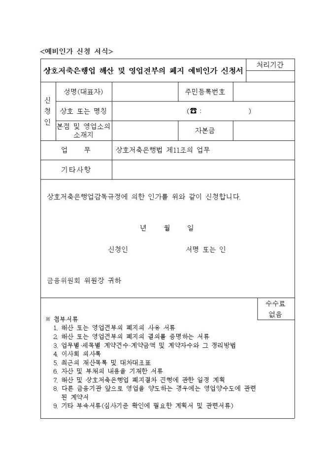 상호저축은행 해산 및 영업전부의 폐지 예비인가