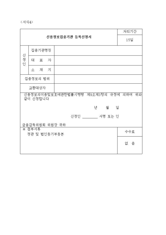 신용정보집중기관의 등록 및 집중관리ㆍ활용대상 정보 승인