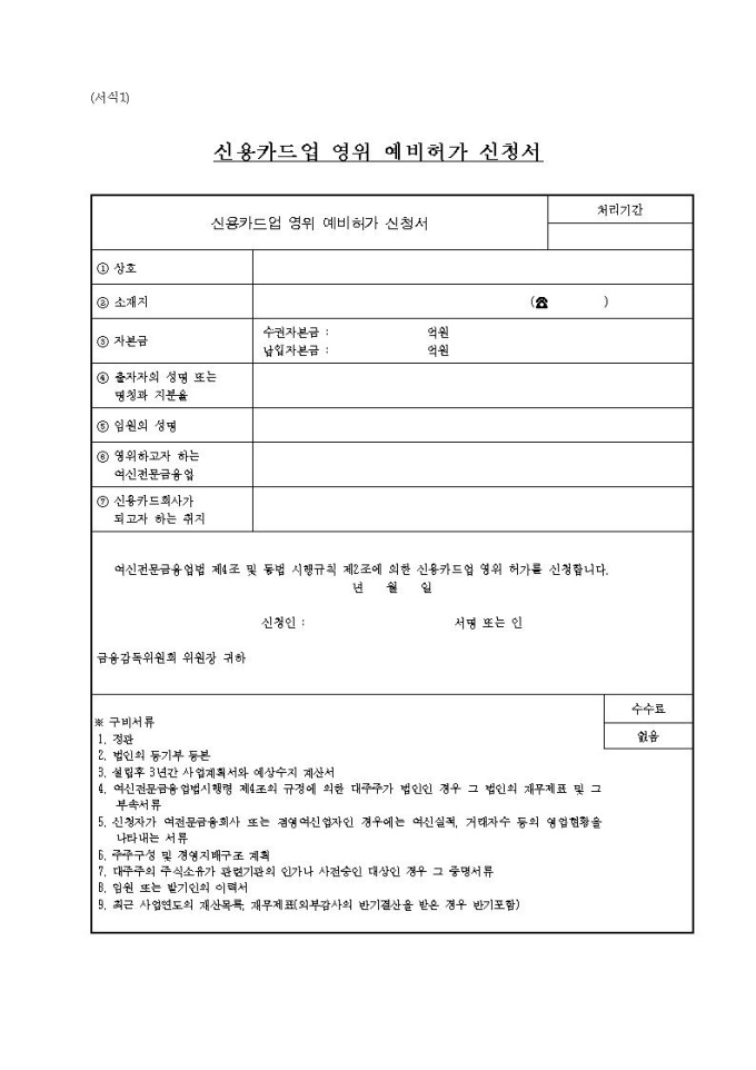 신용카드회사 설립 예비허가
