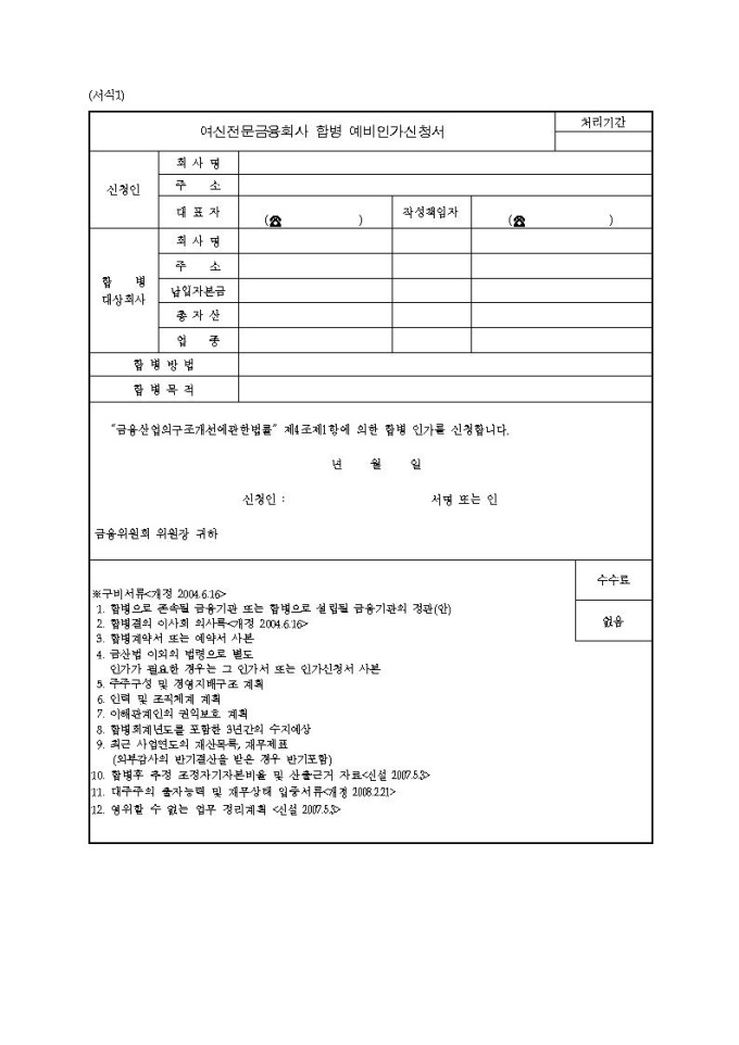 여신전문금융회사 합병 예비인가