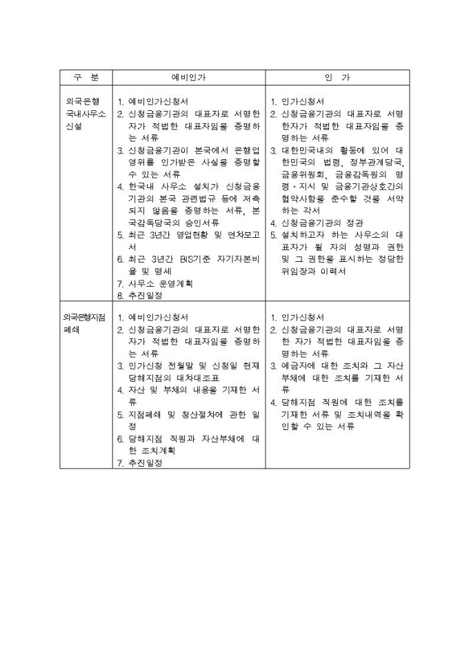 은행업 설립 예비인가