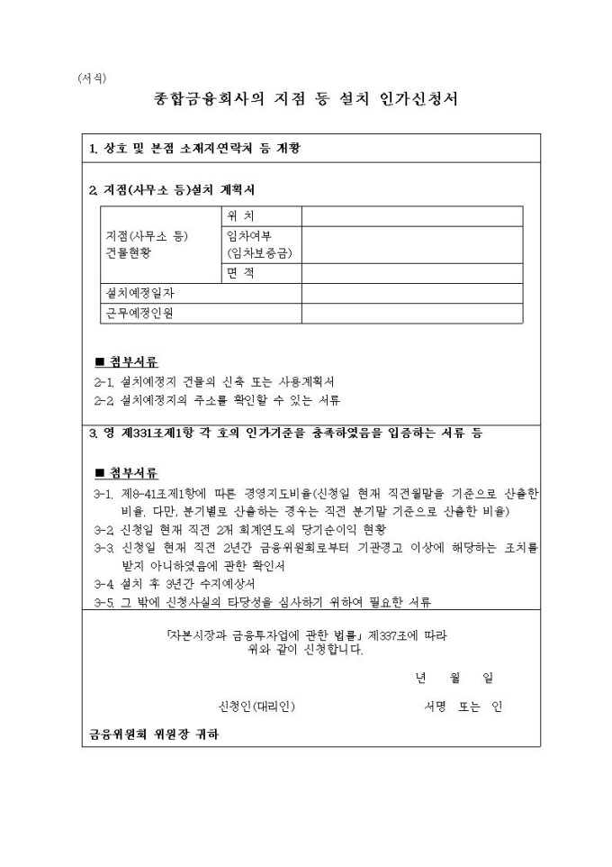 종합금융회사 지점 등 설치 인가