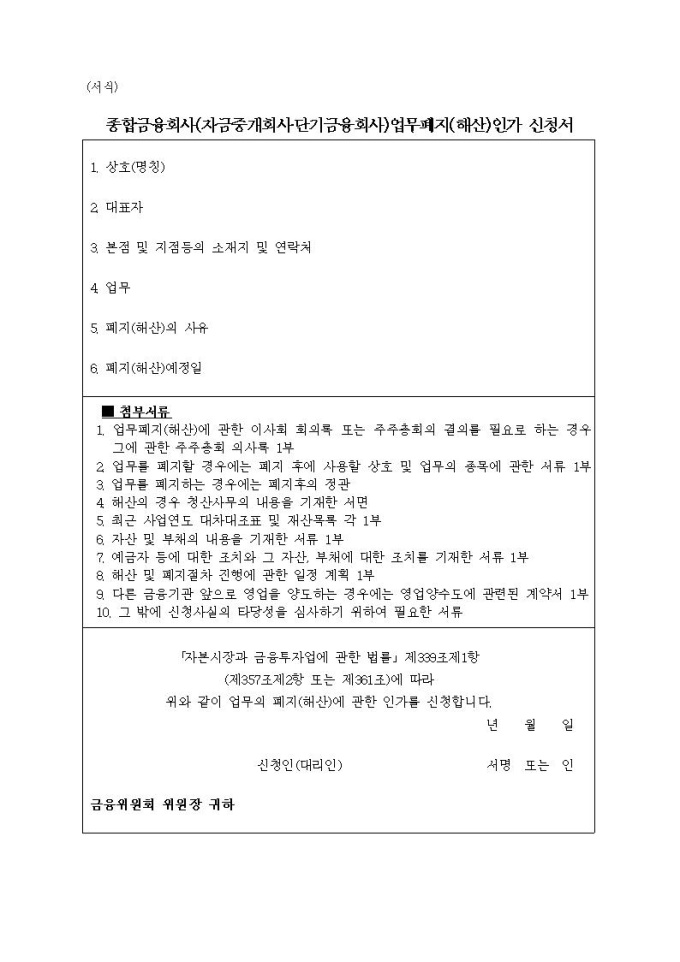 종합금융회사(자금중개회사) 업무폐지(해산) 인가